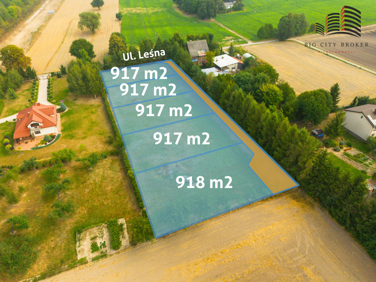 Pięć działek budowlanych o powierzchni 9 arów (900mkw) położonych na ulicy Leśnej 48 w Niedrzwicy Dużej, woj. lubelskie (nr działek; 2124/11, 2124/12, 2124/13, 2124/14, 2124,15).